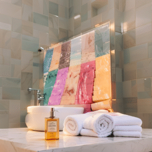 Each soap in the set weighs approximately 1.2 ounces and measures around 1.75″ x 2.5″ x 0.5″. The selection includes options like Bamboo Swirl, Citrus Splash, and even the lovely Lavender Buds, harnessing nature’s beauty with essential oils. If you have preferences for specific colors or fragrances, let us know! We’re happy to cater to your requests, making your event uniquely yours.