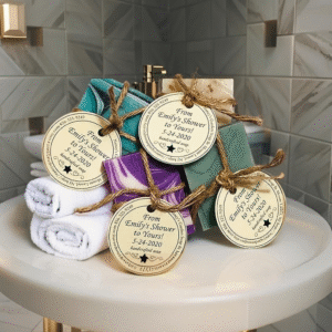 Every celebration deserves a personal touch. That’s why our mini soaps come with custom tags! Choose from delightful shapes like round, heart, baby onesie, or rectangular with a heart punchout. With tag colors available in brown, white, cream, pink, or blue, you can create a cohesive theme that matches your party decor. Simply let us know the text you’d like on your tags, and we’ll make sure they reflect your unique style!